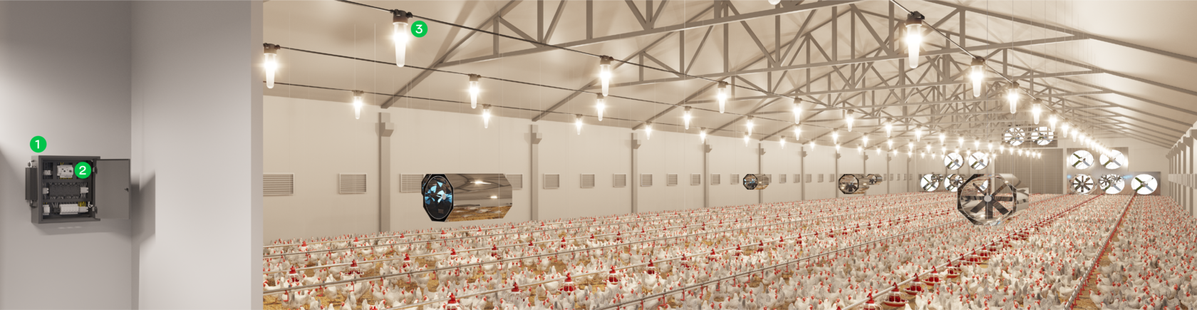 Обеспечивает уровень освещенности от 0 до 60 Лк. на полу птичника
